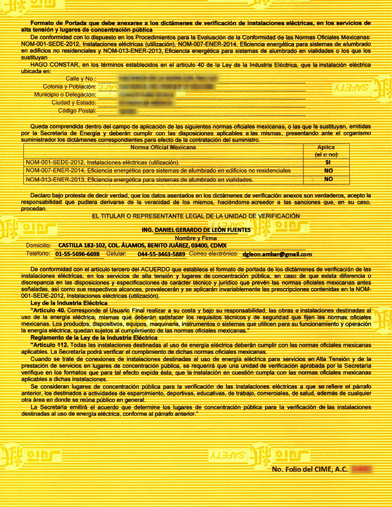 federal y nuestro director general es Unidad de Verificación acreditado y aprobado por la Entidad Mexicana de Acreditación (EMA) y la Secretaría de Energía (SENER), con el número: UVSEIE 620-A.